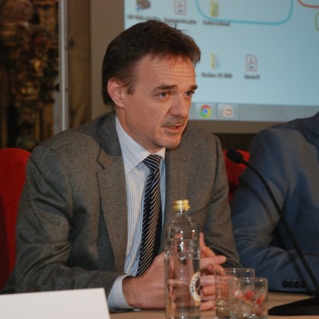 D. José Joaquín Durán González (Presidente de la Sociedad Española de Técnicos Superiores Sanitarios ( SETSS)) durante la mesa "Comparativa en la formación de los TSS en Europa y España".